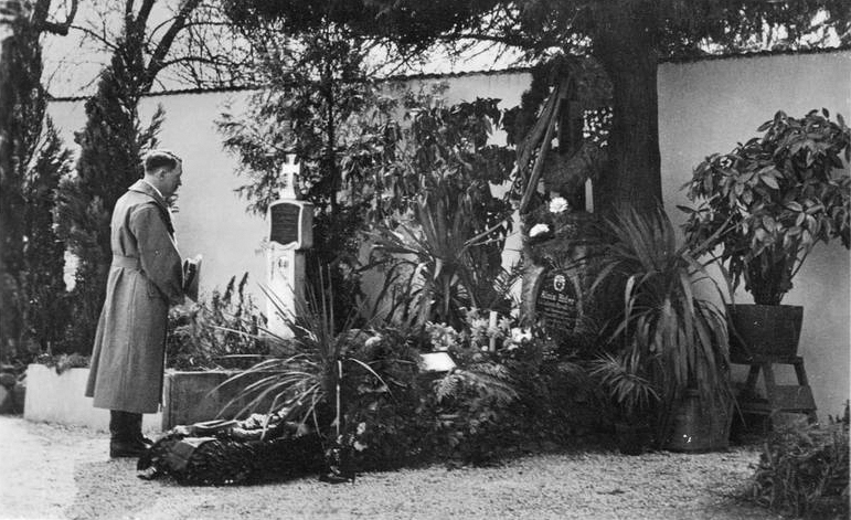 👉👉👉Tras el Anschluss de Austria, el 13 de marzo de 1938 Hitler visitó la tumba de su padre en la localidad de Leonding. Una imagen muy reproducida por la propaganda de la época que, al mismo tiempo, también enmascaraba la mala relación que padre e hijo habían tenido en su día.☠️☠️☠️