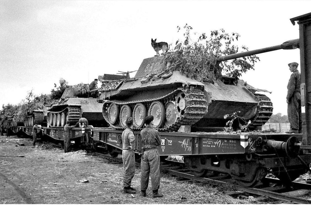 👉Unidades Panther con camuflaje preparadas para su transporte, forman parte de la 8a Compañia del Obersturmführer Karl Nicolussi-Leck de la 5a Division Panzer XX Wiking, el Obersturmführer Karl Nicolussi-Leck obtuvo su ascenso a Hauptsturmführer y Cruz de Caballero de la Cruz de Hierro por romper el cerco de la bolsa de Kowel con 7 unidades Panther de su Cia y 50 granaderos de la 131a División de Infantería apoyados a posteriori por más efectivos de la 4a y 5a Panzer, XX Wiking y 131a Infantería. ☠️💥☠️💥